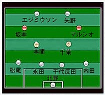 マルシオを中心とした遅攻と速攻を織りまぜ「ボールも走って人も走るサッカー」ポゼッションサッカーができる この4-4-2が基本型。(図1)